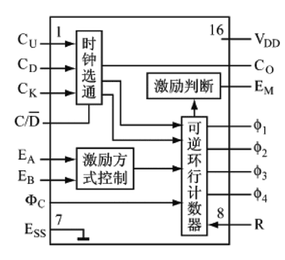 激励方式控制电路用来选择采用何种励磁方式。激励方式判断电路用于输出检测;而可逆环形计数器则用于产生步进电机在选定的励磁方式下的各相通断时序信号。