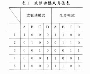 波驱动模式也称四相单四拍工作模式,电机的四个绕组分别轮流通电;全步模式也称四相双四拍工作模式,每一时刻,电机总有两相绕组同时通电;半步模式也称四相八拍控制方式。这种工作模式下,步进电机每一步的步距仅为全步模式的一半,常用于精密定位。
