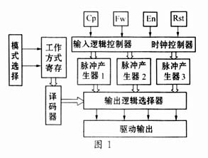 上述三种工作模式由芯片的模式输入(mode)指定切换。芯片上还配置正反转输出控制(fw),复位控制(rst)和紧急停车控制(en)。芯片结构示意图见图1。