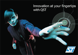The QST108 capacitive touch sensor uses a pure digital firmware-based solution that implements Quantum’s patented and field-proven charge-transfer QProx capacitive technology and provides an intelligent single-chip control interface that responds to users’ touch. The device allows users to create capacitive touch panels of up to eight keys for their product user interfaces, using conventional or flexible printed-circuit boards.