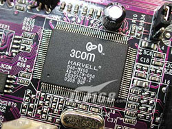 图8 3COM的Marvell940-MV00网络控制芯片是一款千兆网卡芯片,3COM3C940千兆级PCI网络控制器支持10/100/1000BASE-T网络。其比较具有特点的功能是,3C940有着先进的智能型网络测试软件:VCT(VirtualCableTester),其以图形介面的形式可以清楚的显示出双绞线的连接状态,如果存在线路故障,还可告知故障的具体位址,VCT可显示100米內的双绞线网络中断位置,这样可以快速的判断出是物理问题还是软件问题。