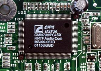 这里尤其值得一提的是C-MEDIA的CMI8738。可以算是这一代产品中佼佼者,功能极大丰富,包括4声道能力、AC-3输出、HRTF3D定位算法接口等。其实它已包含一部分音频处理能力,如3D运算功能就不再全由CPU完成,但其改进又未完全达到硬声卡标准,我觉得还是把它算在软声卡这一类比较好。算是提供介于一般AC97与硬声卡之间的选择。另外,许多PCI声卡也采样这一芯片。