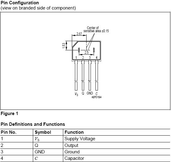 ISO-TR 7637 and DIN 40839. The output (pin 2) is protected against voltage peaks