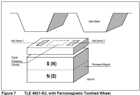 The TLE 4921-5U can be exploited to detect toothed wheel rotation in a rough