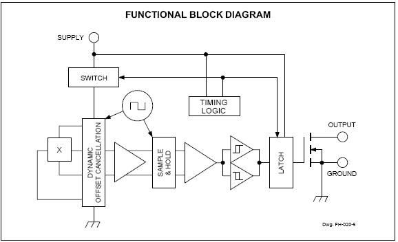 small-signal amplifier, chopper stabilization, a latch, and a MOSFET output.