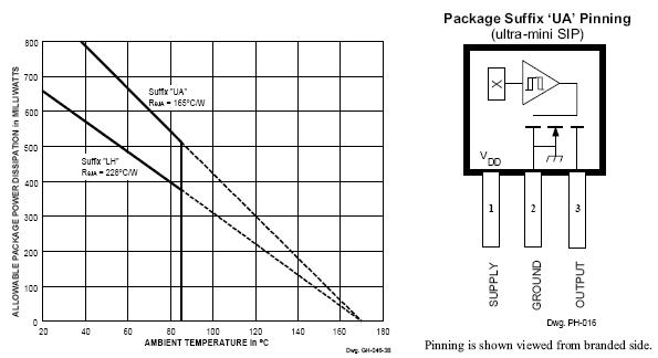 surface-mount package while suffix ‘UA’ is a three-lead ultra-mini-SIP for