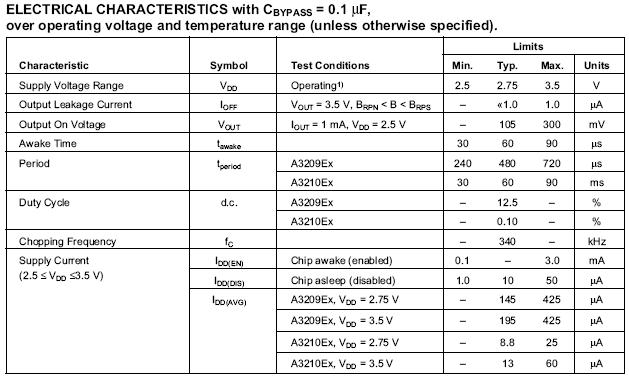 The A3209Ex and A3210Ex integrated circuits are ultra-sensitive, pole