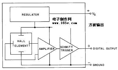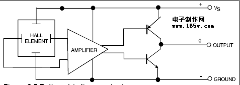 霍尔元件内部结构及其应用图:霍尔元件内部结构其实十分简单如图1:基本原理是磁性材料和电桥与运算放大器构成,当有磁场通过霍尔元件内部的磁性材料时,霍尔元件内部的电桥平衡被破坏,这样使运算放大器产生输出变化,根据这样的变化霍尔元件可形成形形色色的检测电路。下面是霍尔元件的形成图解;需要知道更加详细的原理请参考每一种霍尔元件的使用方法!