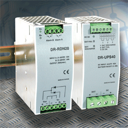 The DR-RDN20 Parallel Redundancy Module has ORing Diodes rated for 24 V and up to 20 A with available relay contact signal and LED indicator for input failure indication.
