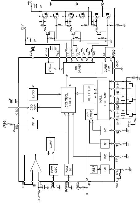 output circuits. Furthermore, the LB11696V provides a full complement of protection circuits allowing it to easily