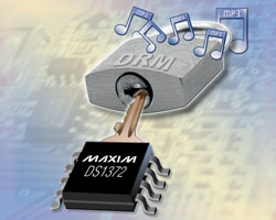 SUNNYVALE, CA—August 9, 2007—Maxim Integrated Products (NASDAQ: MXIM) introduces the DS1372real-time clock (RTC) with a binary counter and unique 64-bit serial number for digital data applications. Digital rights management (DRM) software requires a time stamp for file downloads and a unique serial number for identifying an authorized player. The DS1372's integration of a binary counter and unique 64-bit serial number not only satisfies DRM requirements, but also enables designers to reduce system component count and use a less expensive processor. Offering both of these features in an 8-pin µSOP package, this RTC is ideal for use in MP3/MP4/PMP players, personal video recorders (PVRs), digital cameras, and point-of-sale (POS) terminals.