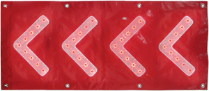 Designed as a portable, lightweight safety device, the CHEVRON-4-RED-02 four-chevron LED mat has three operating modes: sequential flashing of each chevron, all chevrons flashing in unison, and all chevrons always on. The mat, which has nine red, 4,000 to 5,000-mcd LEDs in each of its four chevrons, can operate with its chevrons sequentially flashing for nearly 72 hours from three AA batteries.