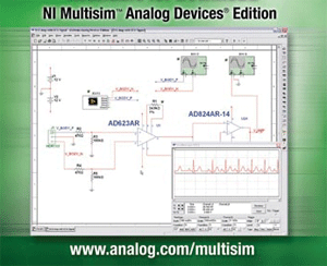 A new edition of National Instruments’ Multisim Spice simulation software—the NI Multisim Analog Devices Editiontargets linear component evaluation and comes pre-loaded with more than 800 Analog Devices operational amplifier and other linear circuit models.