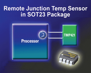 Housed in an 8-lead SOT23 package, the single remote-channel TMP421 and dual remote-channel TMP422 temperature sensors feature n-factor and series resistance correction. Both provide remote sensor accuracy of ±1C max and a local temperature sensor range of ±1.5C max.