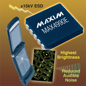 The MAX4990E high-voltage ±15-kV ESD-protected, dc/ac converter drives electroluminescent (EL) lamps. It uses an inductor-based boost converter to generate a high 250-Vp-p voltage for maximum EL lamp brightness. The converter provides resistor-adjustable slew-rate control for audible-noise reduction, capacitor-adjustable switching frequencies, and multiple options for controlling the output voltage.