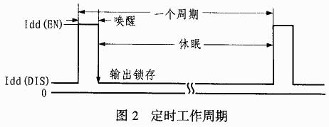 A32xx系列产品内部有一个定时电路,其作用是定时激活(也称唤醒)霍尔传感器以使其工作一段时间后,再定时使传感器休眠一段时间。传感器的工作时间加上休眠时间为一个定时周期,如图2所示。传感器的工作时间对不同的器件是不一样的,A3209、A3210为60μsA3212为45μs。定时周期对不同的器件也是不一样的,其中A3209为480μs、A3210为60ms、A3212为 45ms。在短暂的唤醒时间内,传感器进行采样测量并在定时脉冲的下降沿将数据锁存。而在休眠时间内,器件的输出为最近一次采样的结果。该器件的电源电流不受输出状态的影响。