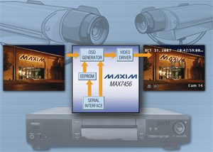 The MAX7456 single-channel on-screen-display (OSD) generator integrates an EEPROM to enable 256 user-programmable characters and graphics for on-screen display. The part eliminates the need for an external video driver, sync separator, and a video switch.