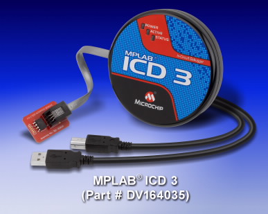 CHANDLER, Ariz., Oct. 28, 2008 [NASDAQ: MCHP] — Microchip Technology Inc., a leading provider of microcontroller and analog semiconductors, today announced from the Embedded Systems Conference in Boston the MPLAB® ICD 3—a cost-effective, high-speed development tool that supports in-circuit programming and debuggingof Microchip’s Flash-based 8-bit PIC® microcontrollers (MCUs), and its entire line of 16- and 32-bit MCUs and 16-bit dsPIC® Digital Signal Controllers (DSCs). With robust system capabilities and high-speed circuitry, the MPLAB ICD 3 offers full compatibility with the MPLAB Integrated Development Environment (IDE), exceptional programming speed and reliability.
