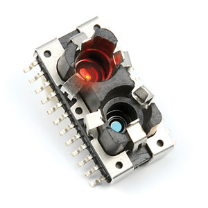 The 150 Mbps receiver part consists of a PIN Photo Diode, TIA and End Amplifiers integrated into one single die. This monolithic receiver IC enables best in class immunity against electromagnetic disturbances. MLX75605 is packaged in an innovative package technology, developed for Automotive Optoelectronic IC’s. This 24 pin SOIC package can be handled by conventional SMD pick and place machines and is fully compliant with lead free reflow SMD soldering processes.