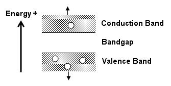本征半导体(intrinsic semiconductor) 没有掺杂且无晶格缺陷的纯净半导体称为本征半导体。在绝对零度温度下,半导体的价带(valence band)是满带(见能带理论),受到光电注入或热激发后,价带中的部分电子会越过禁带(forbidden band/band gap)进入能量较高的空带,空带中存在电子后成为导带(conduction band),价带中缺少一个电子后形成一个带正电的空位,称为空穴(hole),导带中的电子和价带中的空穴合称为电子 - 空穴对。上述产生的电子和空穴均能自由移动,成为自由载流子(free carrier),它们在外电场作用下产生定向运动而形成宏观电流,分别称为电子导电和空穴导电。这种由于电子-空穴对的产生而形成的混合型导电称为本征导电。导带中的电子会落入空穴,使电子-空穴对消失,称为复合(recombination)。复合时产生的能量以电磁辐射(发射光子photon)或晶格热振动(发射声子phonon)的形式释放。在一定温度下,电子 - 空穴对的产生和复合同时存在并达到动态平衡,此时本征半导体具有一定的载流子浓度,从而具有一定的电导率。加热或光照会使半导体发生热激发或光激发,从而产生更多的电子 - 空穴对,这时载流子浓度增加,电导率增加。半导体热敏电阻和光敏电阻等半导体器件就是根据此原理制成的。常温下本征半导体的电导率较小,载流子浓度对温度变化敏感,所以很难对半导体特性进行控制,因此实际应用不多。