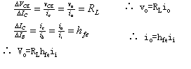 CE-IC特性曲线上,△VCE与交流量的vce=vo、△IC与交流量的ic=io、△IB与交流量的ib=ii相当,分别求解各关系,有下列各式成立: