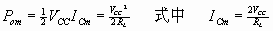 Pom,因集电极电流的最大值Icm=(VCC/2)/RL=VCC/(2RL),输出电压的最大值为VCC/2,故如下所示:![]()