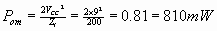 OTL电路中的一种代表电路,通过npn型和pnp型的晶体三极管互相组合,分别对在正、负半周期中接收的功率进行放大。最大输出如下所示:P