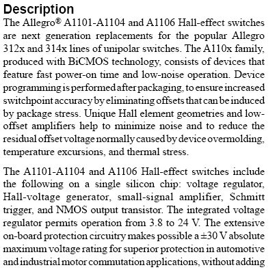 单极开关型 A1101EUA-T 原装现货热卖 咨询热线:0755-33062500 (PDF文档)