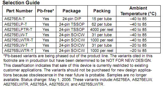 【产品说明】全新原装现货,A6276ELW-Tis specifically designed for LED-display applications.