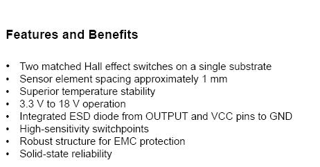 方向检测霍尔效应开关A3425LL-T (ALLEGRO代理商)原装现货 报价0755-33062500 附技术资料 (PDF文档)
