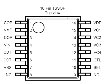 通过 SEL 端子的切换,可用来保护 3 节或 4 节串联电池。