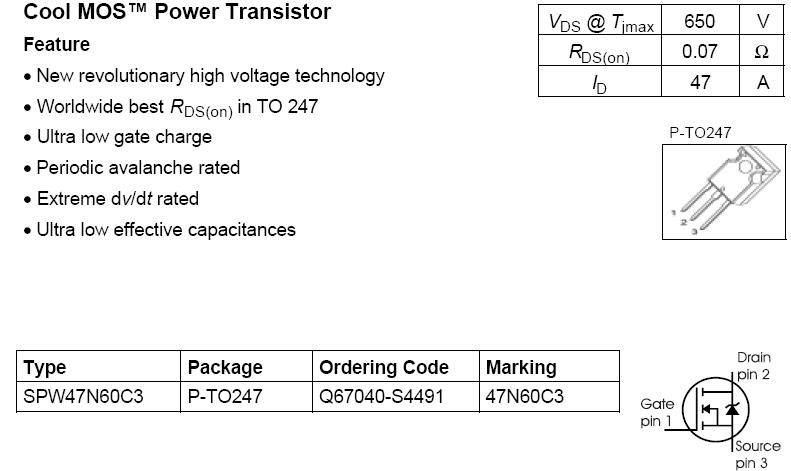 SPW47N60C3 INFINEON 场效应管 现货热卖