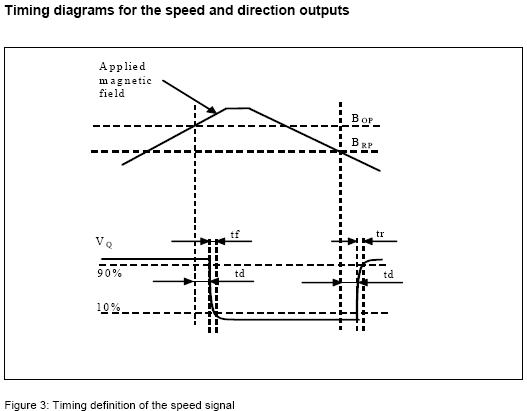 The TLE4966H provides a speed signal at Q2 for every magnetic pole pair and a direction