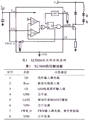 XLT604的内部结构如图1所示。各引脚的主要功能如表1所列。