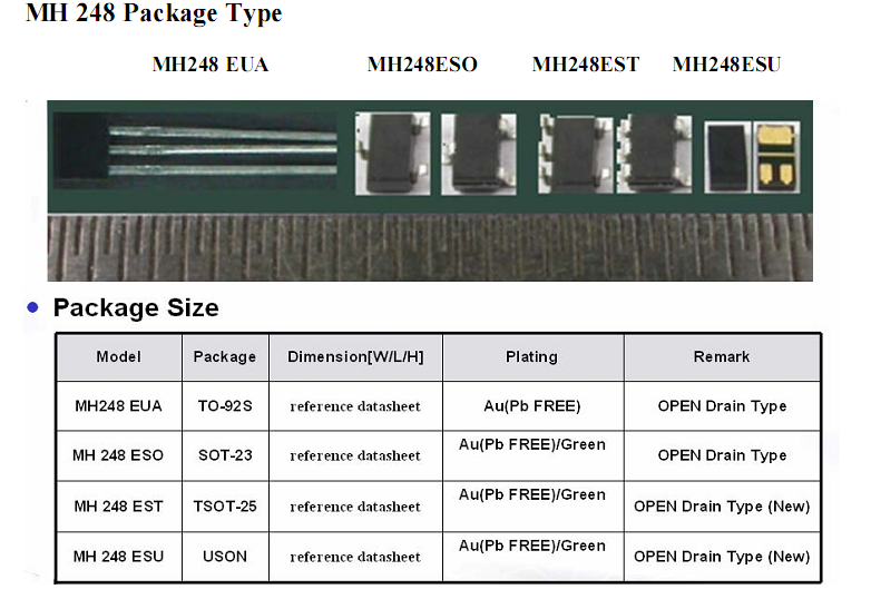 MH-248·型号 MH-248KUAMH-248·封装形式:SIP-3/SOT-23MH-248·包装形式:MH-248·产品说明 原装正品MH-248·产品备注:可替代ALLEGRO (A3211/A3212/A3213/A3214)