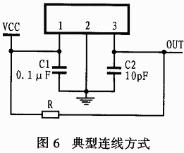在实际使用时,建议在器件的电源端加上0.1μF的旁路电容,以便对外部噪声和器件内部时钟噪声进行抑制,其典型连线方式见图6所示。
