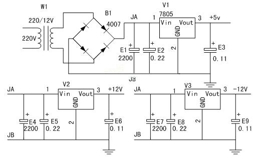 控制系统能否稳定、可靠的工作,电源的设计是非常重要的。在本系统中,需要三种电源:+5V,