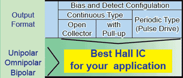 Various product line up by ·Sensing characteristics based on Hall element product line ·Output form to optimize for applications