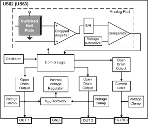 基于先进的Melexis CMOS 工艺,芯片集成了霍尔传感器,动态失调校正和下桥输出驱动器。