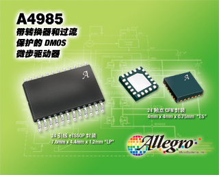 Allegro 的A4985是带内置转换器的完整微步电动机驱动器,它能够减少生产和正常操作中的返工成本,实现轻松操作和过流保护。他们主要针对办公室自动化市场。
