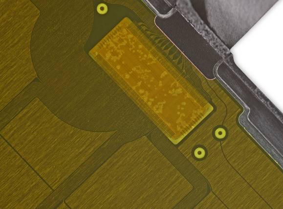拆解之后,如上图所示,3D Touch主要是由矩形电容器网格所组成,然后通过小轨迹连接至控制器电路。iFixit表示,这些格子的密度没有主触控传感器高,因为这一功能并不需要太高的精度水平。