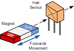 侧向或滑动通过检测是用于检测磁场的存在,因为它移过霍尔元件的面例如固定的气隙距离内,计数旋转磁体或电动机的旋转速度是有用的。